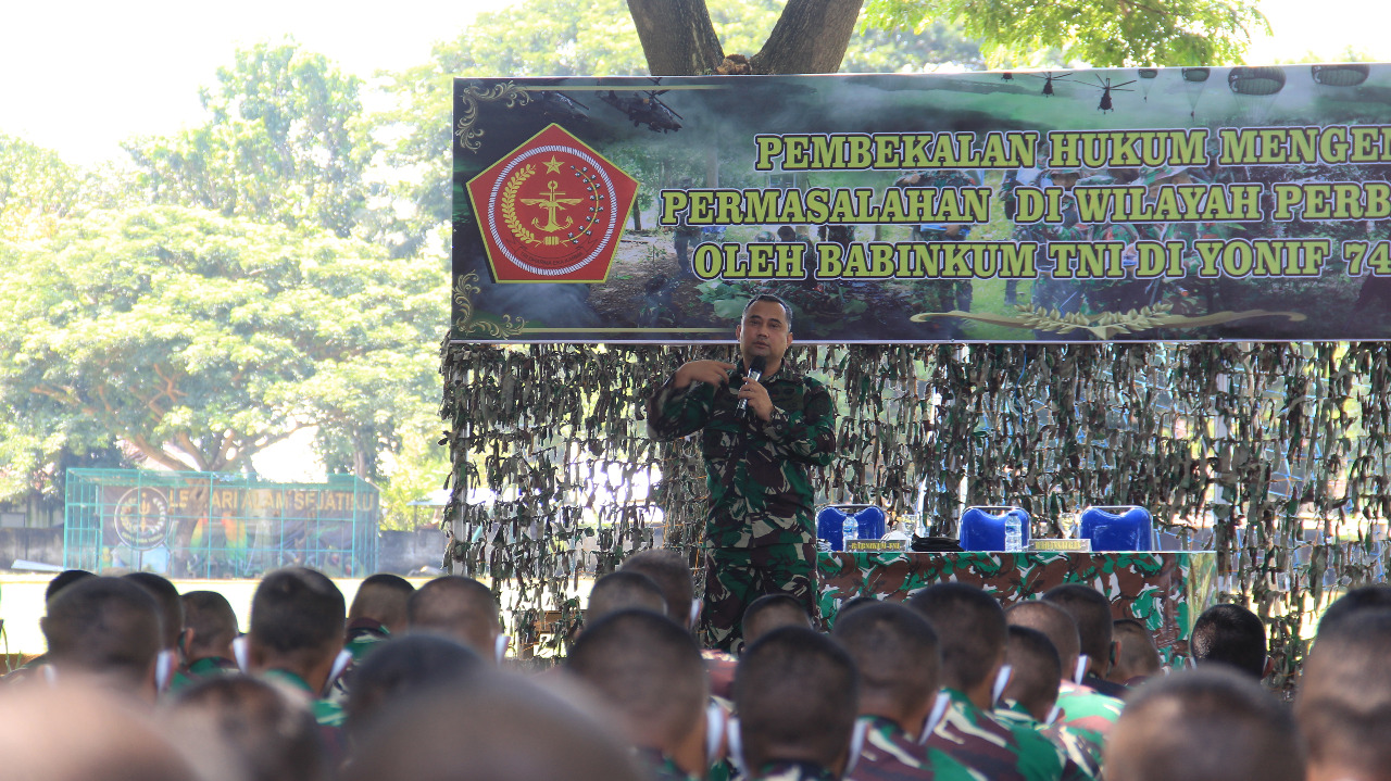 JAMBIDAILY MATARAM – Jelang pemberangkatan ke wilayah perbatasan RI-RDTL, seluruh personel Yonif 742/SWY menerima pembekalan hukum dari Badan Pembinaan Hukum (Babinkum) TNI di Lapangan Trisula Yonif 742/SWY, Gebang, Mataram, Nusa Tenggara Barat.