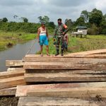 Hal tersebut terlihat saat warga bersama anggota TNI saling bahu membahu bergotong royong mengumpulkan kayu yang akan digunakan sebagai patok atau batas tanah yang akan di tancap setiap ukuran panjang jalan 100 meter.