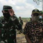 JAMBIDAILY SUARA TNI – Kasdim 0415/Batanghari, Letkol Inf Tri Nugroho, beserta Staf Kodim meninjau posko TMMD ke 110 di Desa Sungaiterap, Kamis (26/2/2021) siang.