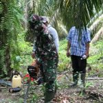 JAMBIDAILY SUARA TNI – Lagi, warga Desa Sungaiterap dan Satgas TMMD nekat terjun ke sungai dengan membawa balok kayu, yang digunakan untuk membuat pondasi pada jembatan di titik 4, Minggu (14/3/2021).