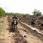 Sontak Danton Satgas TMMD ke 110 Kodim 0415/Batanghari dan Ketua BPD datang dengan mengendarai sepeda motor sambil mengendong air.