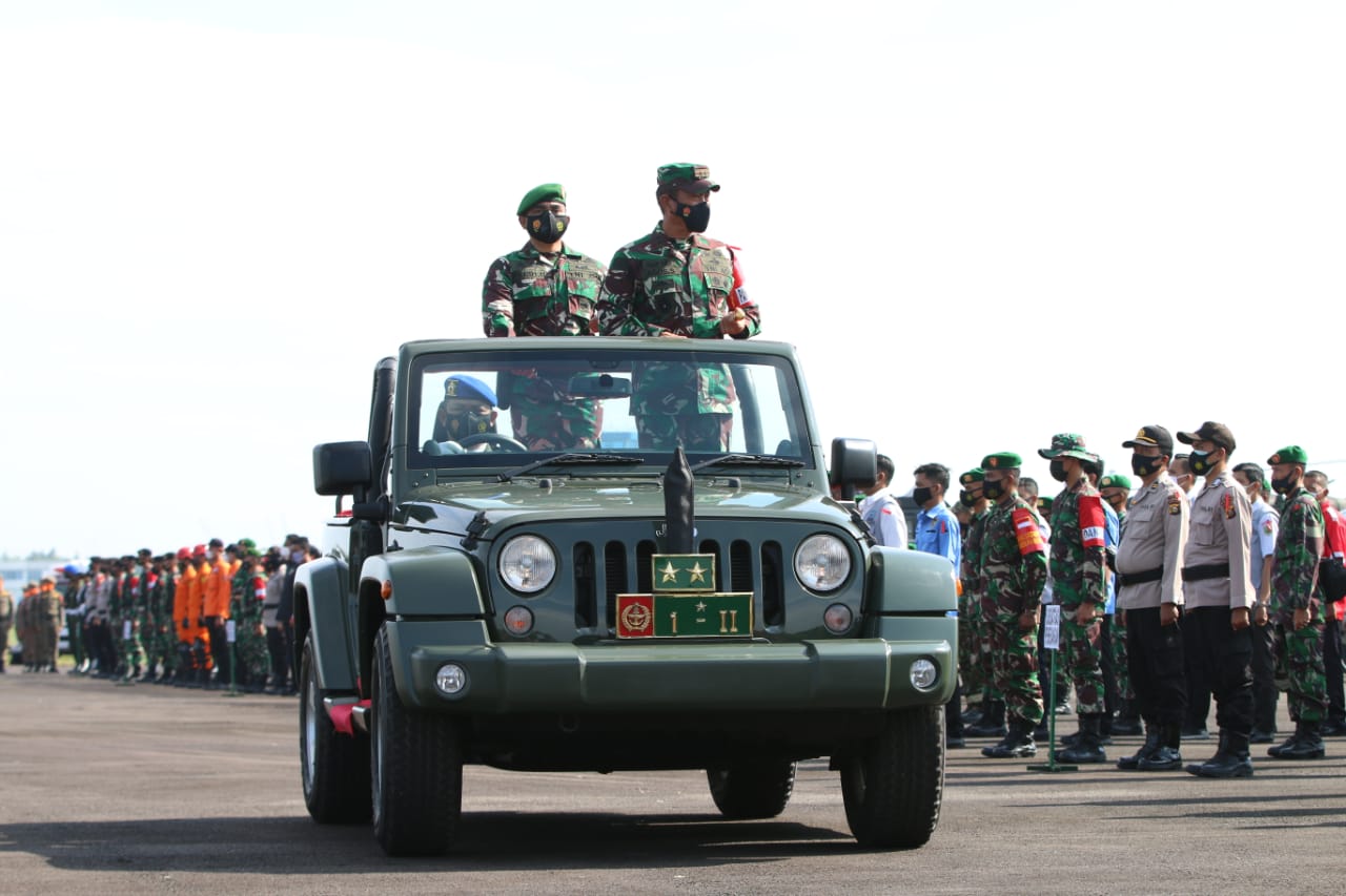 JAMBIDAILY SUARA TNI – Panglima Kodam II/Sriwijaya Mayjen TNI Agus Suhardi memimpin Apel Gelar Kesiapan Operasi Latihan Kesiapsiagaan Operasional (LKO) Kebakaran Hutan dan Lahan (Karhutla) di Wilayah Kodam II/Swj TA 2021, Rabu (14/4/2021) bertempat di Apron Bravo Lanud Sri Mulyono Herlambang (SMH) Palembang. Adapun yang bertindak selaku Komandan Apel adalah Dandim 0430/Banyuasin, Letkol Arm Farid Hidayat.