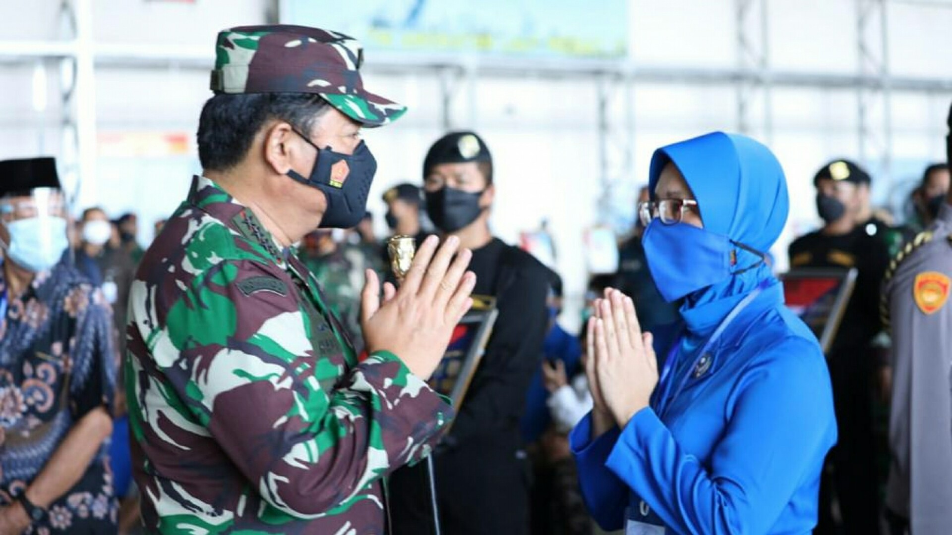 JAMBIDAILY SUARA TNI – Panglima TNI Marsekal TNI Hadi Tjahjanto, S.I.P., mendampingi Menteri Pertahanan (Menhan) Prabowo Subianto selaku Irup (Inspektur Upacara) dalam acara penganugerahan Tanda Kehormatan Republik Indonesia (RI) dan kenaikan pangkat luar biasa untuk 53 Prajurit Kapal Perang Republik Indonesia (KRI) Nanggala-402.
