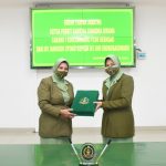 Turut Hadir dalam acara ini Wadan Seskoad Brigjen TNI Fulad, S.Sos., M.Si, Ir Seskoad, Para Direktur, Kakordos, Dankorsis dan Pejabat Struktural Seskoad, serta pengurus Persit KCK Cabang BS Seskoad, dengan tetap memperhatikan Protokol Kesehatan Covid-19. (Penseskoad)
