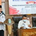 JAMBIDAILY TANJAB BARAT – Giat peletakan batu pertama pembangunan Musholla Al Alief, peletakan batu pertama secara simbolis pembangunan toilet dan septic tank individu Program Sanitasi Pedesaan, penyerahan hadiah pemenang lomba desa dan kelurahan tingkat kabupaten tahun 2021 dan penyaluran Bantuan Langsung Tunai (BLT) Dana Desa Tahun 2021 di Desa Purwodadi, Kecamatan Tebing Tinggi, rabu (16/06).