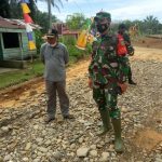 Kapten Inf Suhadi pejabat Pasiter Satgas yang berada di lokasi TMMD, pagi ini, Minggu (4/7/2021) berkoordinasi dengan pihak Kepolisian dalam hal ini dari Polsek Bangko, Polres Merangin.