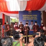 Usai penyambutan dengan tarian dan beberapa kata sambutan dari beberapa tokoh, Gubernur dan Wakil Gubernur Jambi menyambangi tempat konferensi pers untuk menyampaikan sambutannya.