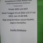 Sesuai dengan ketentuan pendaftaran mulai dibuka sejak 19 Juli 2022 dan 27 Juli 2022 sebagai tenggat akhir pendaftaran calon ketua Persatuan Wartawan Indonesia (PWI) provinsi Jambi.