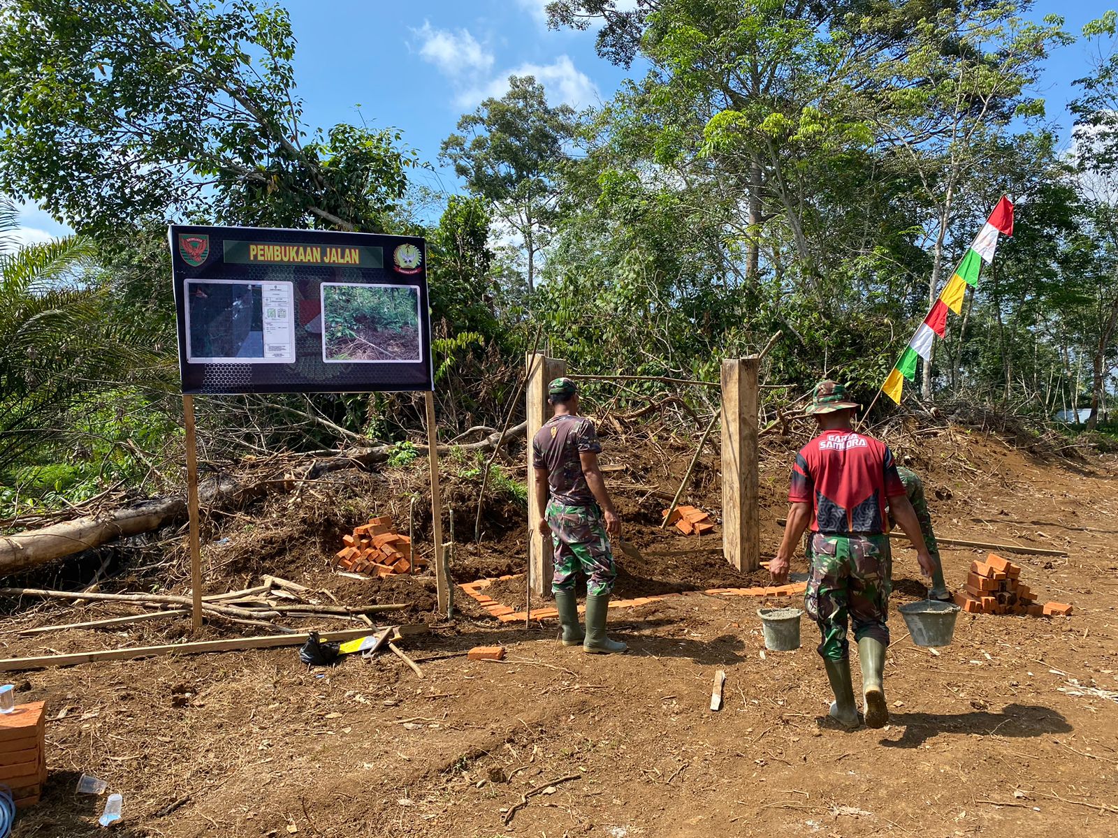 Perwira seksi teritorial Satgas Kapten Inf Dofi Saputra mengatakan, pelaksanaan pembangunan tugu prasasti sendiri dilakukan anggota Satgas dengan dibantu warga sekitar, sebagai penanda. “Maka untuk mengenang program TMMD ke-117 Kodim 0416/Bute ini dibuatlah sebuah prasasti.