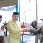 JAMBIDAILY BANGKO – Bupati Merangin H Mashuri menyerahkan surat keputusan pengangkatan Pegawai Pemerintah dengan Perjanjian Kerja (P3K) formasi 2022, secara simbolis di halaman depan kantor lama bupati Merangin, Senin (07/8).