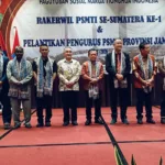 JAMBIDAILY JAMBI – Gubernur Jambi Al Haris bersama Istri menghadiri ngunduh mantu putra Cek Endra (CE), Khalid Syailendra dan Divya Barati Rista di Ratu Convention Center, Kota Jambi, Sabtu (14/10/2023).
