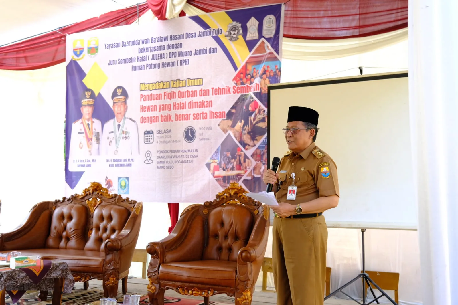Hal tersebut disampaikan Wagub saat membuka Diskusi Kajian Umum Panduan Fiqih dan Tehnik Sembelih Hewan Yang Halal Dimakan Dengan Baik, Benar dan Ihsan, bertempat di Pondok Pesantren Daarudda’wah Ba’alawi Hasani Jambi Tulo, Kecamatan Maro Sebo, Kabupaten Muaro Jambi, Selasa (11/06/2024).