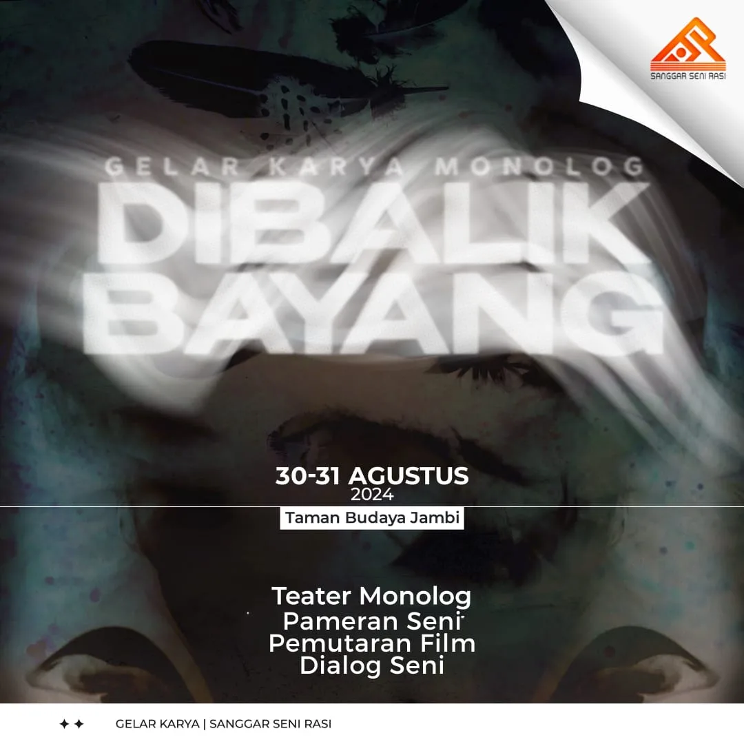 JAMBIDAILY SENI – Sanggar seni Rasi menyajikan perhelatan seni bertajuk Gelar Karya “Dibalik Bayang” di Taman Budaya Jambi, pada 30-31 Agustus 2024.