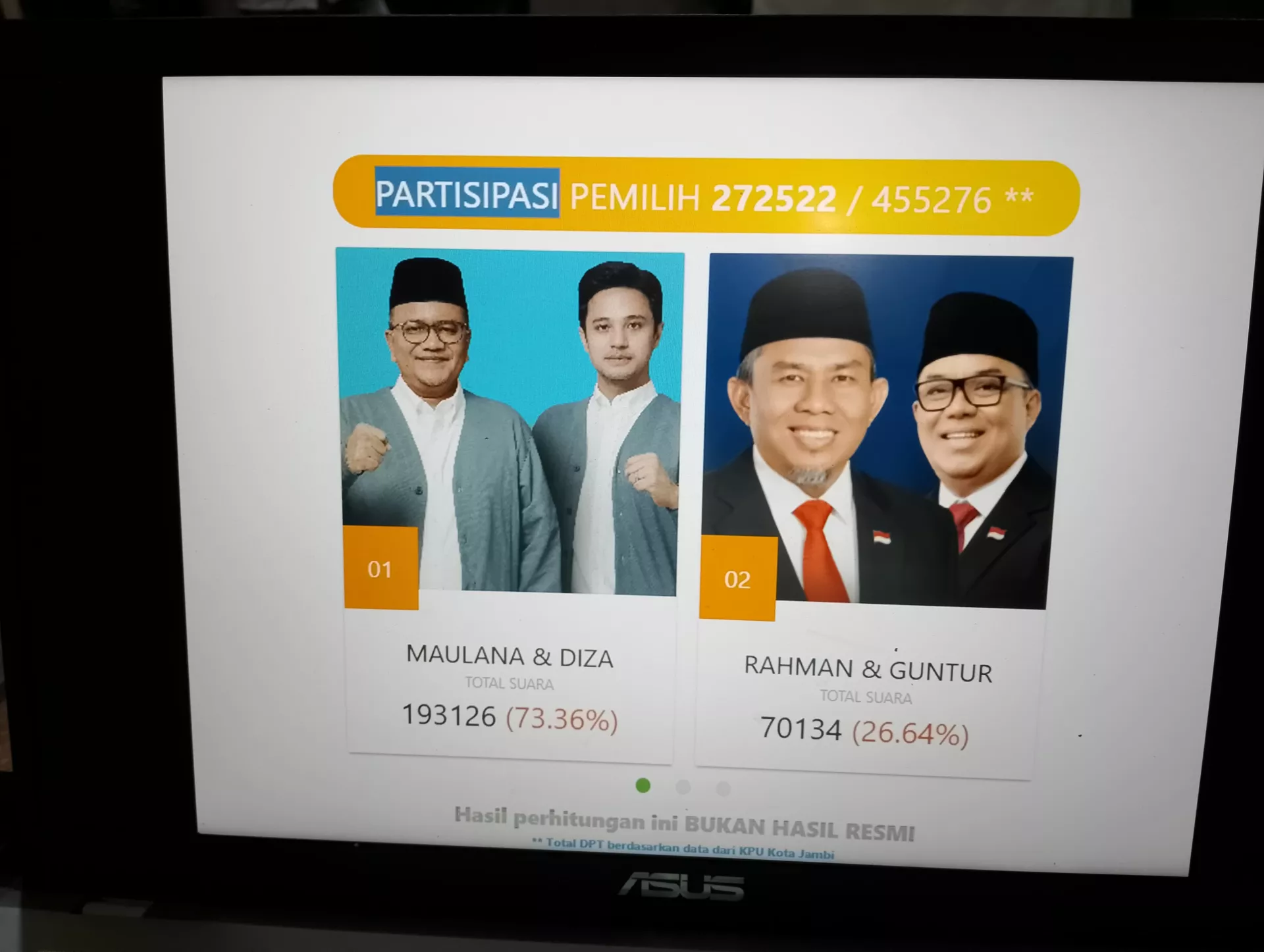 Dengan hampir seluruh TPS selesai dihitung, Maulana-Diza telah menunjukkan dominasi mereka sebagai pilihan utama masyarakat. Seluruh perhatian kini tertuju pada hasil resmi dari KPU, namun optimisme kemenangan sudah menyelimuti Kota Jambi.