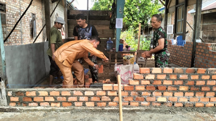 Tak hanya sekadar membantu, Afdal turun langsung mengangkat material, memasang dinding, dan memastikan setiap proses berjalan lancar. Keterlibatan perangkat desa ini menjadi bukti nyata bahwa gotong royong masih hidup di tengah masyarakat.