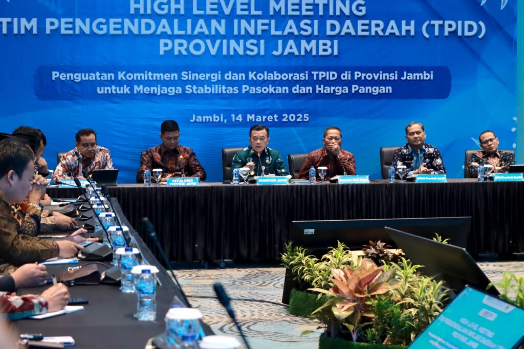 JAMBIDAILY ADV – Ketua DPRD Provinsi Jambi, M. Hafiz Fattah hadiri High Level Meeting Tim Pengendalian Inflasi Daerah (TPID) Provinsi Jambi yang dipimpin Gubernur Jambi, Al Haris dalam rangka menjaga stabilitas pasokan dan harga pangan dalam bulan Suci Ramadhan dan Idul Fitri 2025.