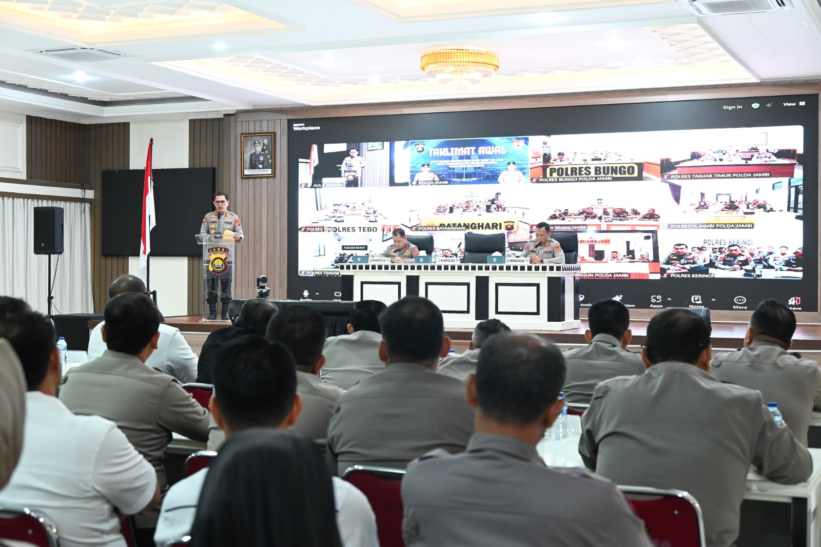 Hadir dalam kegiatan ini Kapolda Jambi Irjen Pol. Krisno H. Siregar, Wakapolda Brigjen Pol. M. Mustaqim, Irwasda Kombes Pol. Jannus Parlindungan Siregar, Kapolresta Jambi, para Pejabat Utama, serta jajaran Kapolres se-Polda Jambi secara virtual.