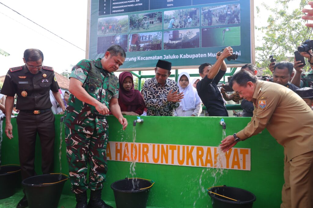 JAMBIDAILY, MUARO JAMBI – Kepala Staf TNI Angkatan Darat (KSAD) Jenderal TNI Maruli Simanjuntak, M.Sc., didampingi Gubernur Jambi Dr. H. Al Haris, S.Sos., M.H., meresmikan 47 titik sumber air bersih Program TNI AD Manunggal Air di Desa Sarang Burung, Kecamatan Jambi Luar Kota, Kabupaten Muaro Jambi, Selasa (3/6/2025).