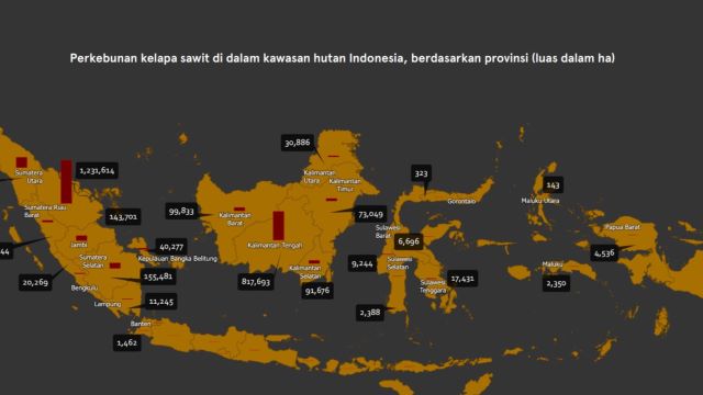 Hingga tahun 2022, luas perkebunan sawit Indonesia mencapai 16,83 juta hektare, dengan sekitar 5,4 juta hektare (32%) berasal dari kawasan hutan yang telah dilepaskan untuk perkebunan (CIFOR-ICRAF & KLHK, 2023).