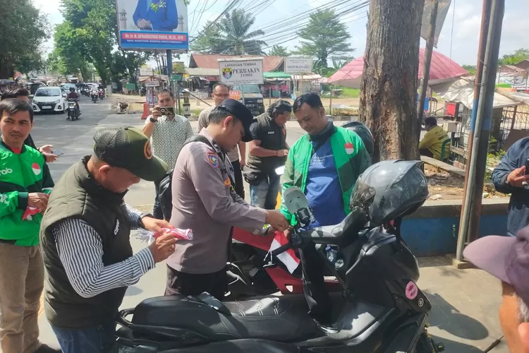Selain pembagian bendera, kegiatan ini juga menjadi ajang silaturahmi dan penguatan sinergi antara kepolisian dengan komunitas ojol dan ormas masyarakat.