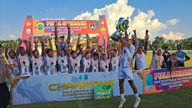 Akhirnya, SSB JTS Kota Jambi berhasil menaklukkan Antara FC Tebo dengan skor fantastis 6 :0 di partai final Piala Soeratin U15 putaran Provinsi, pada Jum’at, 22 Agustus 2025.