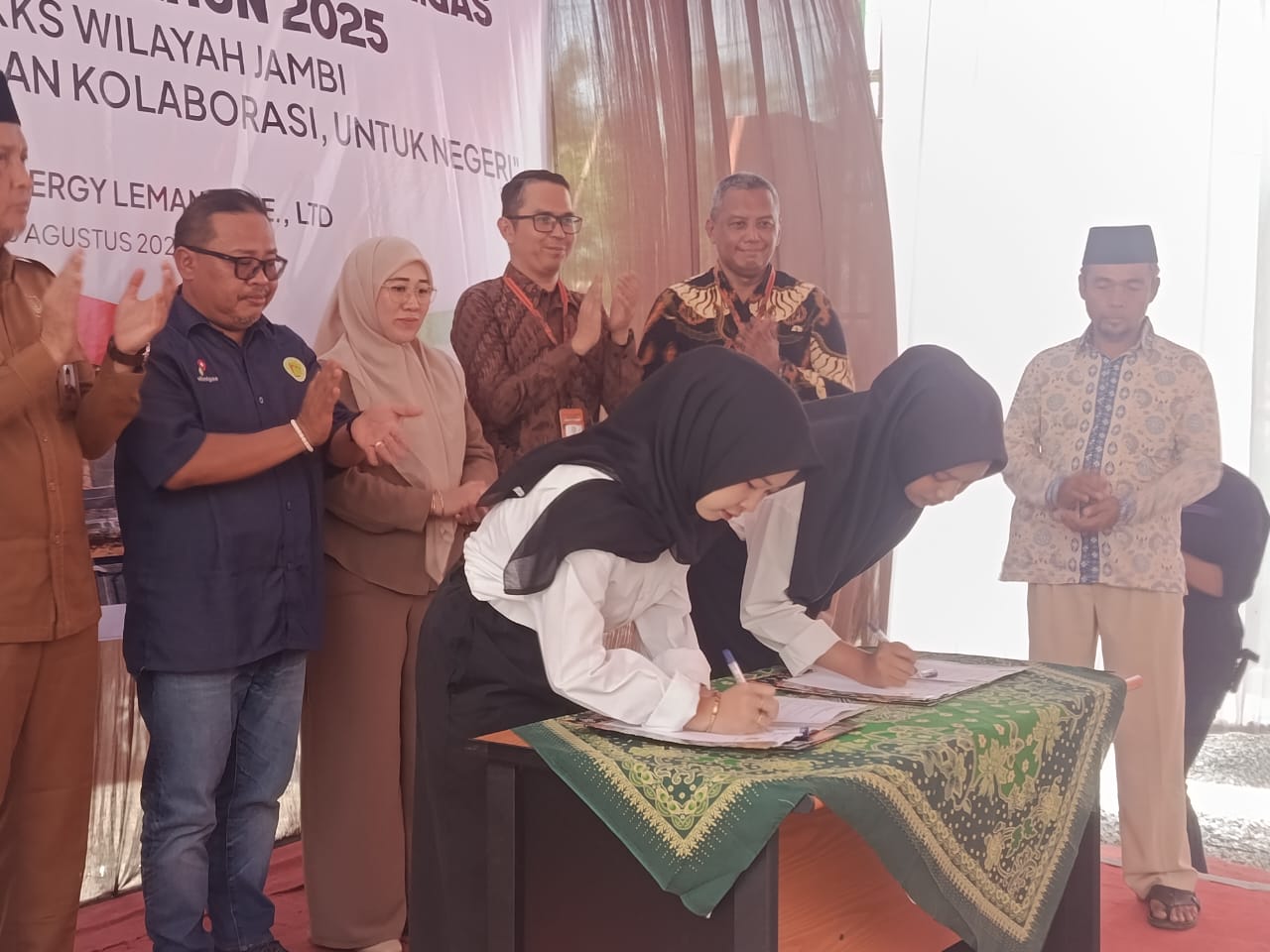 Acara turut dihadiri Agus Sanusi selaku Asisten 3 bidang Administrasi Umum Setda Tanjabbar, Mursyid Songsang selaku Ketua FJM Jambi, Dahlan selaku Kadis Dikbud Tanjabbar dan perwakilan KKKS wilayah Jambi yakni PetroChina Jabung Ltd, Serelaya, Pertamina EP, MontD’Or serta Jindi South Jambi B. (*/)