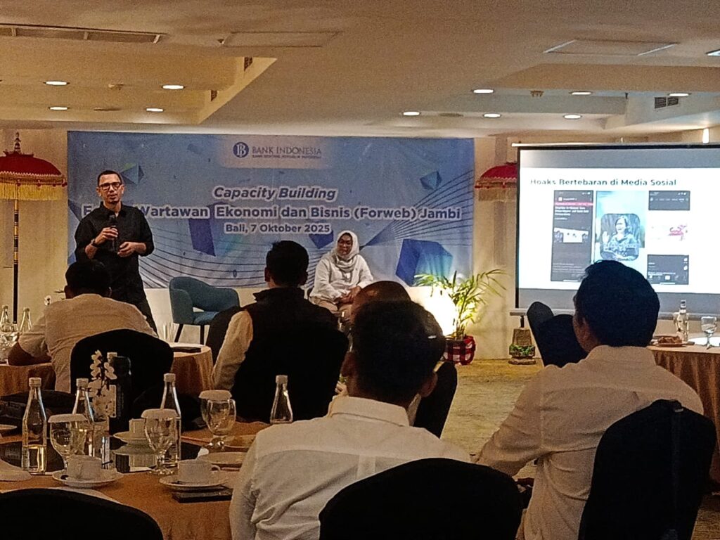 JAMBIDAILY.COM – Tingkatkan kapasitas wartawan yang tergabung dalam Forum Wartawan Ekonomi dan Bisnis (Forweb) Provinsi Jambi, Kantor Perwakilan Bank Indonesia (BI) Provinsi Jambi kembali menggelar Capacity Building tahun 2025, di provinsi Bali.