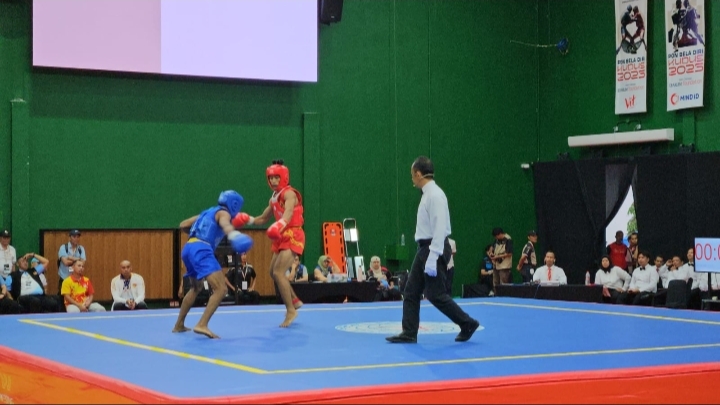 JAMBIDAILY.COM -Lima atlet wushu Jambi nomor sanda atau tarung berhasil menang atas lawannya dan berhak melaju kebabak selanjutnya pada PON Bela Diri 2025, Kudus, Jawa Tengah.