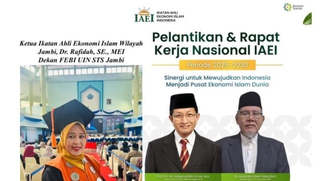 Ketua IAEI Wilayah Jambi, Dr. Rafidah, MEI, turut hadir dalam pelantikan pengurus Dewan Pimpinan Pusat (DPP) IAEI periode 2025–2030 di Jakarta. Rafidah yang juga menjabat sebagai Dekan Fakultas Ekonomi dan Bisnis Islam (FEBI) UIN Sultan Thaha Saifuddin Jambi serta Bendahara Umum Asosiasi Fakultas Ekonomi dan Bisnis Islam (AFEBIS) Nasional, dipercaya sebagai Anggota Komite Pengembangan dan Penguatan Wilayah dan Komisariat.