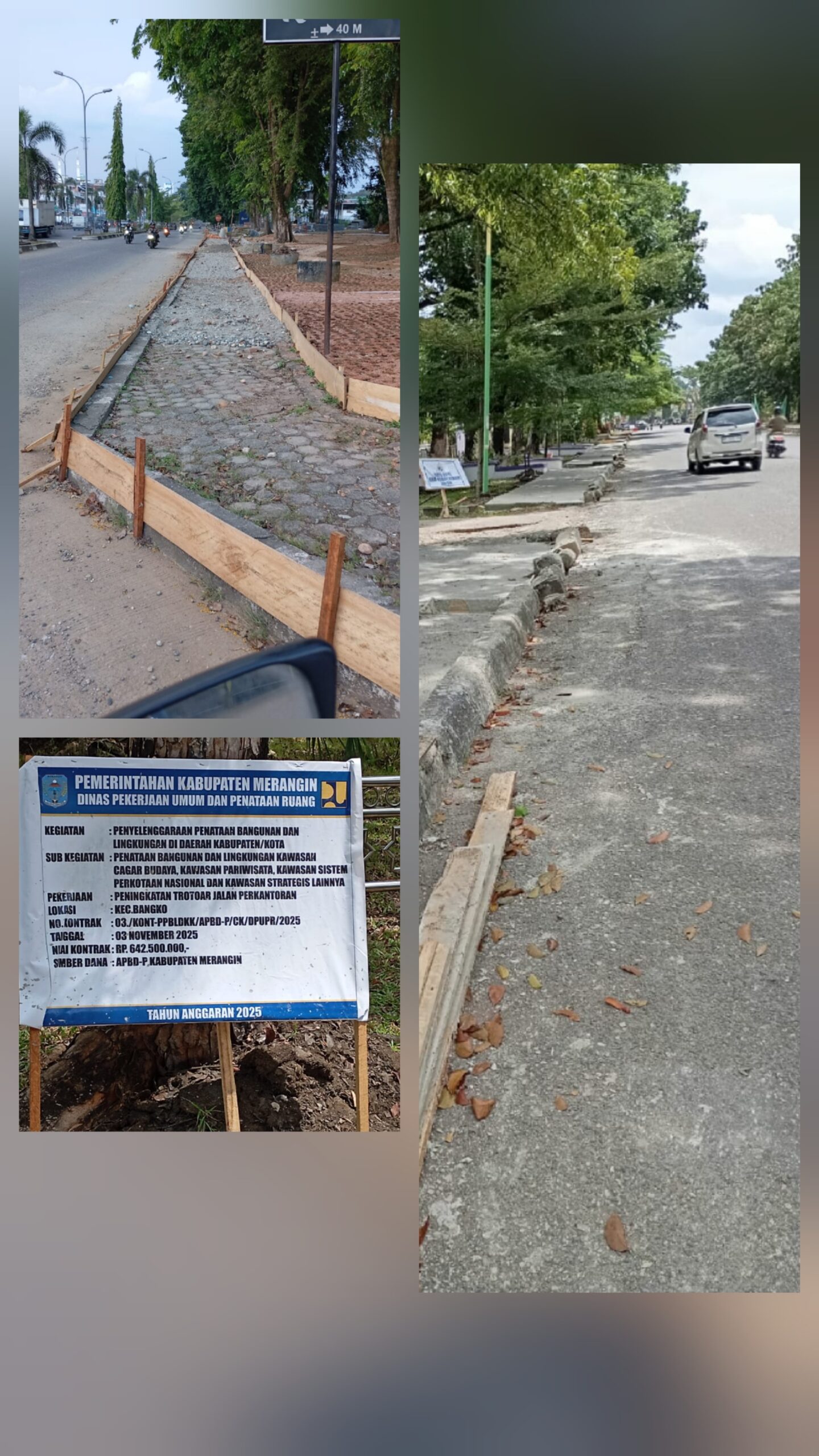 Selain itu, terdapat satu paket tender besar: peningkatan trotoar kawasan perkantoran depan kantor bupati lama dengan nilai HPS Rp 647,98 juta, dikerjakan oleh CV Bukit Abadi Sejahtera.