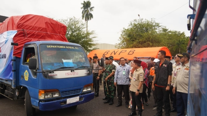 Gubernur Jambi dalam sambutannya juga menyampaikan apresiasi kepada seluruh instansi yang terlibat, baik dari BPBD, TNI, Polri, maupun unsur Forkopimda lainnya yang terus berkoordinasi agar bantuan segera tiba dan dapat dimanfaatkan masyarakat di daerah terdampak.