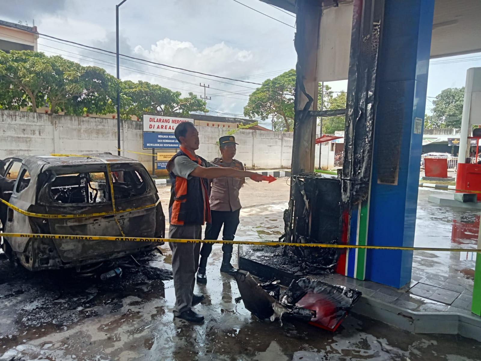 Pihak kepolisian bersama petugas pemadam kebakaran dan masyarakat setempat bergerak cepat melakukan pemadaman, pengamanan tempat kejadian perkara (TKP), pemasangan garis polisi, serta pengumpulan keterangan saksi.