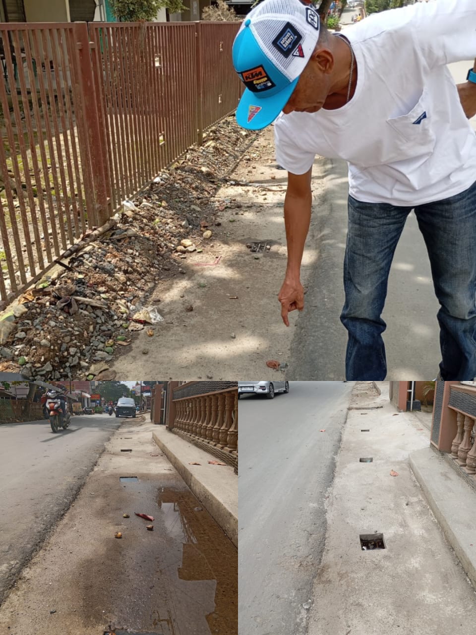 Menurutnya, kondisi drainase yang terlihat tidak mengalir itu bukan karena gagal fungsi, melainkan masih terkendala sisa material bekisting yang belum dibersihkan.