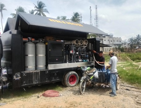 Air bersih hasil pengolahan kemudian didistribusikan secara langsung ke permukiman warga yang terdampak, dengan mengutamakan lokasi yang mengalami keterbatasan akses air bersih.manis, cepat, dan tepat sasaran.