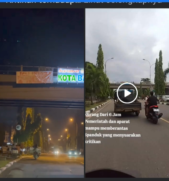 Namun spanduk tersebut tak bertahan lama. Dalam rekaman video lain yang diambil di lokasi yang sama pada siang hari, spanduk itu sudah tidak terlihat lagi. Dalam unggahan video kedua, disertai keterangan bernada sindiran, “Kurang dari enam jam pemerintah mampu memberantas spanduk yang menyuarakan kritik.” Video tersebut diunggah oleh akun anonim dan kembali menyebar luas.