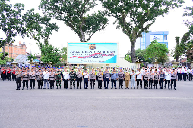 “Dengan memanjatkan puji syukur ke hadirat Tuhan Yang Maha Esa, Operasi Keselamatan 2026 Polda Jambi saya nyatakan dimulai,” tegasnya.