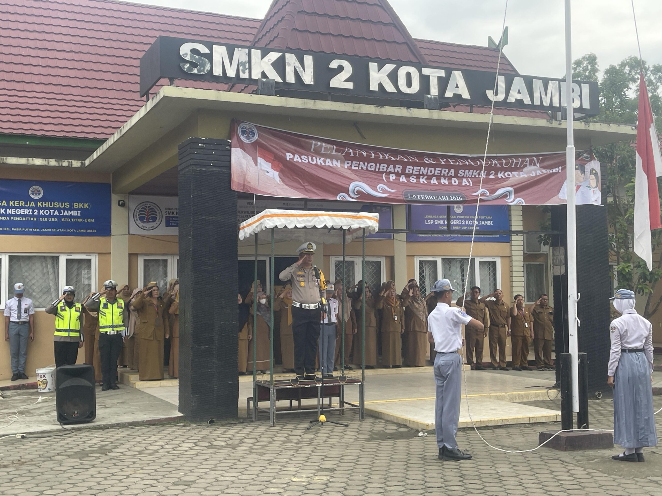 Kegiatan pertama melakukan pengukuhan Paskibraka pada saat upacara di SMKN 2 Kota Jambi. Kegiatan tersebut dilaksanakan oleh Kasubdit Kamsel Ditlantas Polda Jambi, AKBP Novrizal, bertindak sebagai Pembina Upacara.