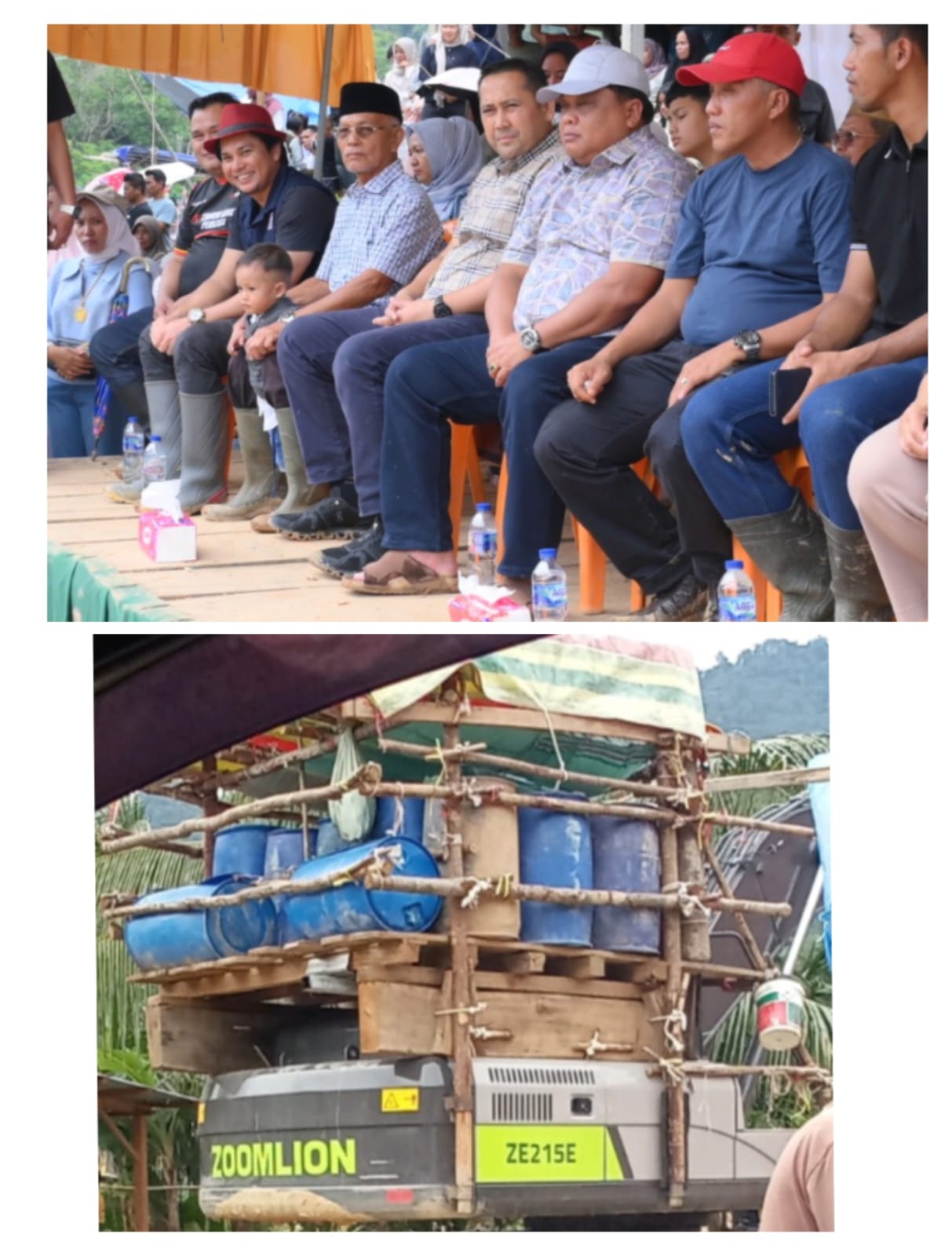 Namun di tengah suasana sakral dan penuh pesan adat, warga justru menyoroti pemandangan kontras di sekitar lokasi. Sejumlah ekskavator yang telah dimodifikasi tampak berada di kawasan tersebut. Sebagian di antaranya terlihat dipenuhi drum dan jeriken bahan bakar minyak perlengkapan yang kerap diasosiasikan masyarakat dengan aktivitas Pertambangan Emas Tanpa Izin (PETI).
