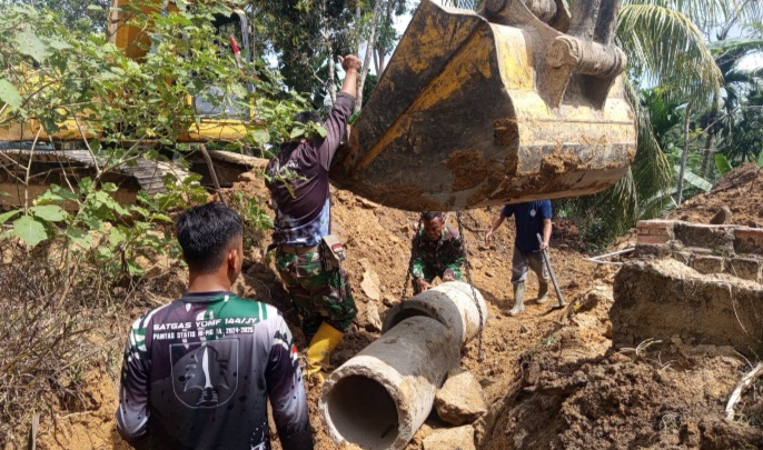 JAMBIDAILY.COM – Bulan suci Ramadan tidak menyurutkan semangat personel Satgas TNI Manunggal Membangun Desa (TMMD) ke-127 Kodim 0415/Jambi dalam melaksanakan gotong royong pembangunan gorong-gorong, Rabu (25/2/2026).