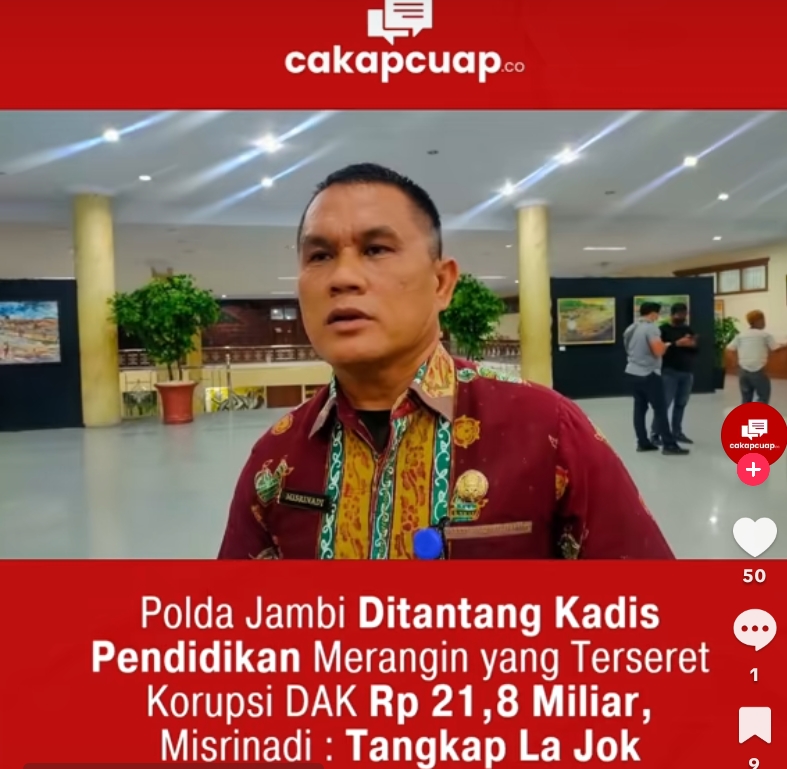 Dalam narasi video yang sama, sebelumnya Afrizal, anggota Ikatan Pemuda Anti Korupsi Jambi (IPAKJ), juga disebut mendesak aparat penegak hukum untuk menindaklanjuti dugaan keterlibatan Misrinadi dalam kasus DAK Pendidikan 2022.