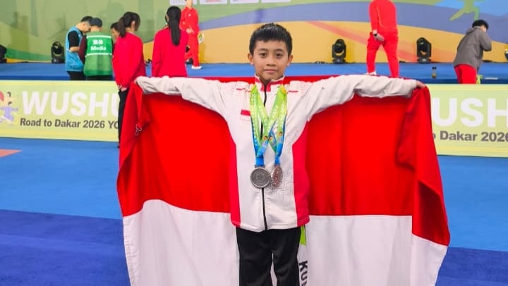JAMBIDAILY.COM- Bikin bangga, Atlet wushu Jambi Zivan Abimanyu Rasendria yang tampil dinomor seni atau taolu berhasil menyumbangkan dua medali perak untuk Tim Wushu Indonesia pada ajang Kejuaraan Dunia Junior di Tianji, Tiongkok pada 23-30 Maret 2026.