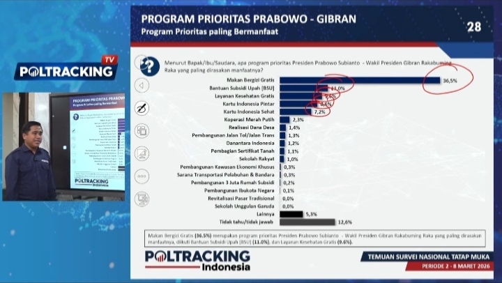 Survei juga mendapati kalau tingginya tingkat kepercayaan dan kepuasan terhadap kepemimpinan Prabowo ini ditopang oleh program Makan Bergizi Gratis (MBG).